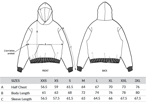 Set-in sleeve. Double-layered hood in self-fabric. Inside single Jersey back neck tape. Self-fabric half-moon at back neck. Single needle topstitch at neckline and along hood opening. 2x1 rib at sleeve hem and bottom hem. Armhole, sleeve hem and bottom hem with twin-needle topstitch. Kangaroo pocket at front. GOTS certified. Fairwear certified. Vegan certified.